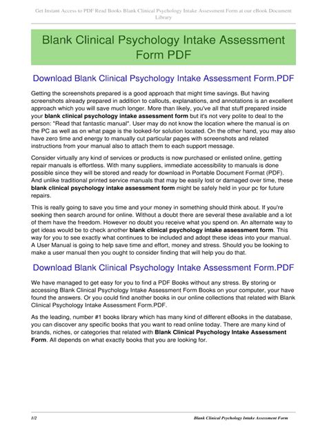 Download online Blank Clinical Psychology Intake Assessment Form Library Binding ManyBooks